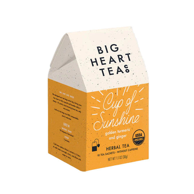 The golden tea that inspired Big Heart Tea Co. Our flagship brew of turmeric, ginger, and peppercorn is basically liquid yoga: a harmonious blend of turmeric, ginger, and peppercorn.