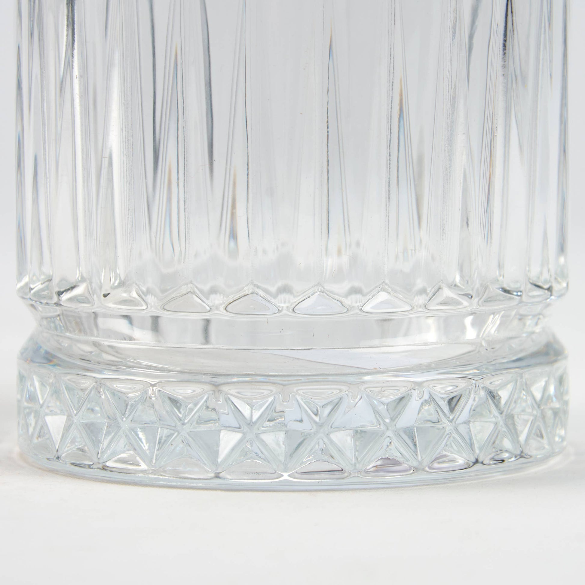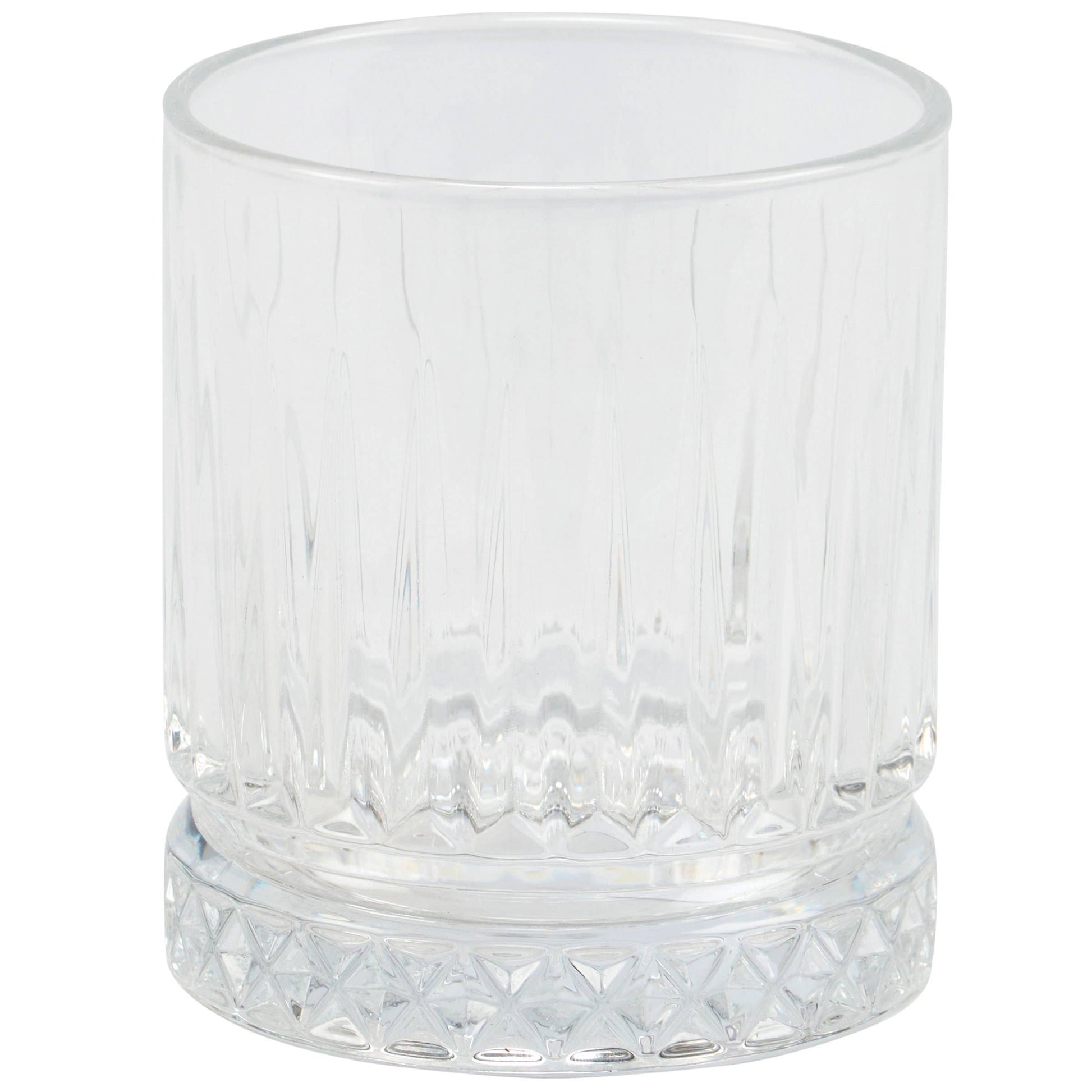 A 10 oz drinking glass displaying a simple design with subtle cuts in the glass for added texture. Our Small Cut Glass drinking glass coordinates well with drinkware from our Art Deco Collection. Drinking glass is conveniently dishwasher safe for easy cleaning. A piece of stylish drinkware perfect for everyday gatherings.